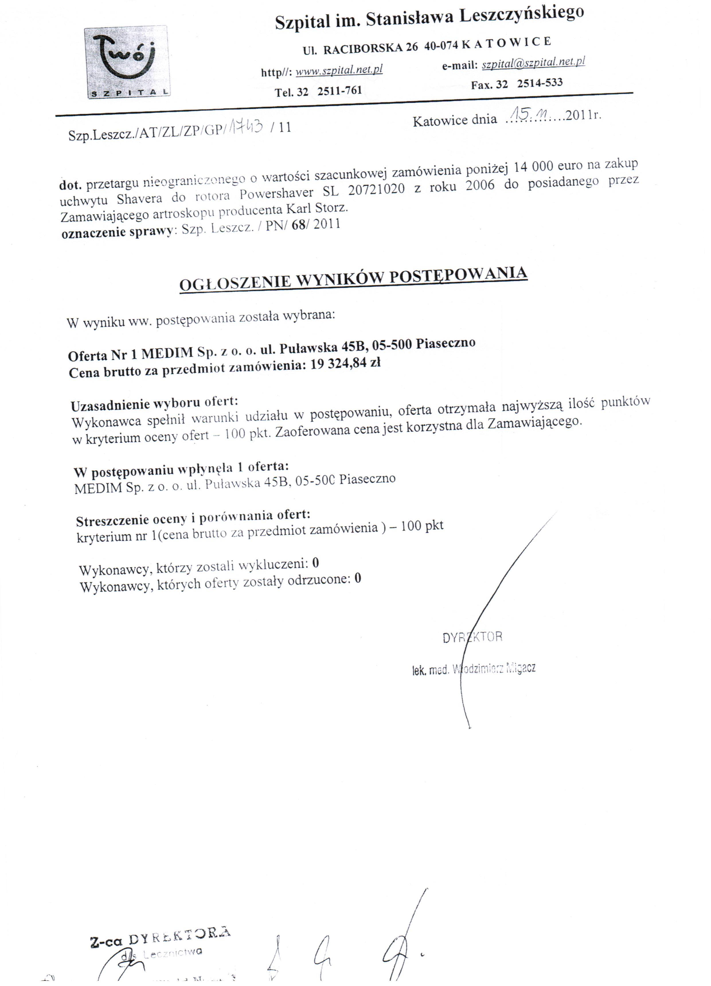 w dniu 24.10.2011r. o godz. 11:00 w Sekcji Zamówień Publicznych w Katowicach przy ul. Raciborskiej 28 (budynek Przychodni Szpitala , II piętro).