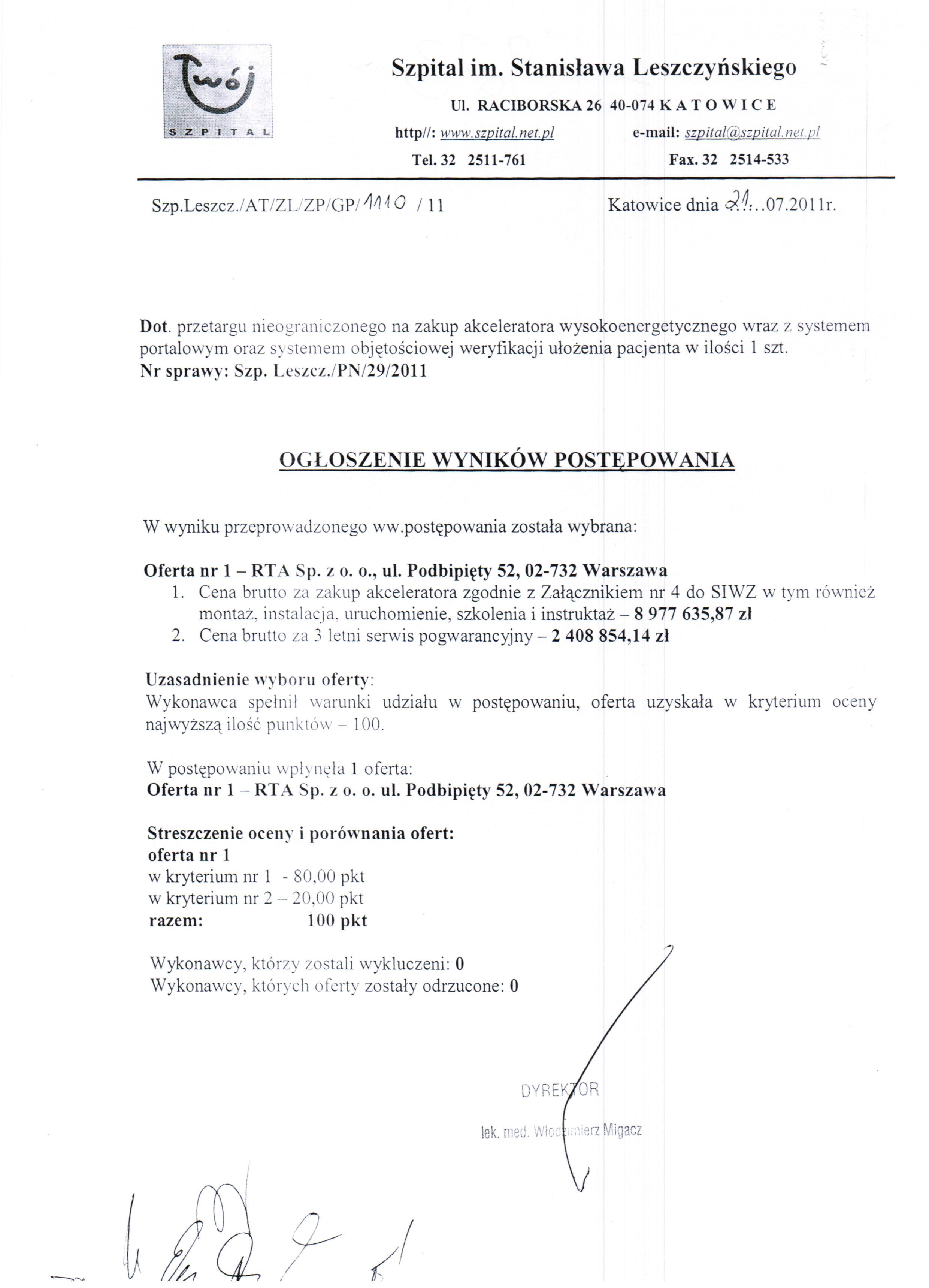 do dnia 28.06.2011r. do godz. 10:00 w Kancelarii Dyrektora Szpitala w Katowicach przy ul. Raciborskiej 26 (I piętro).