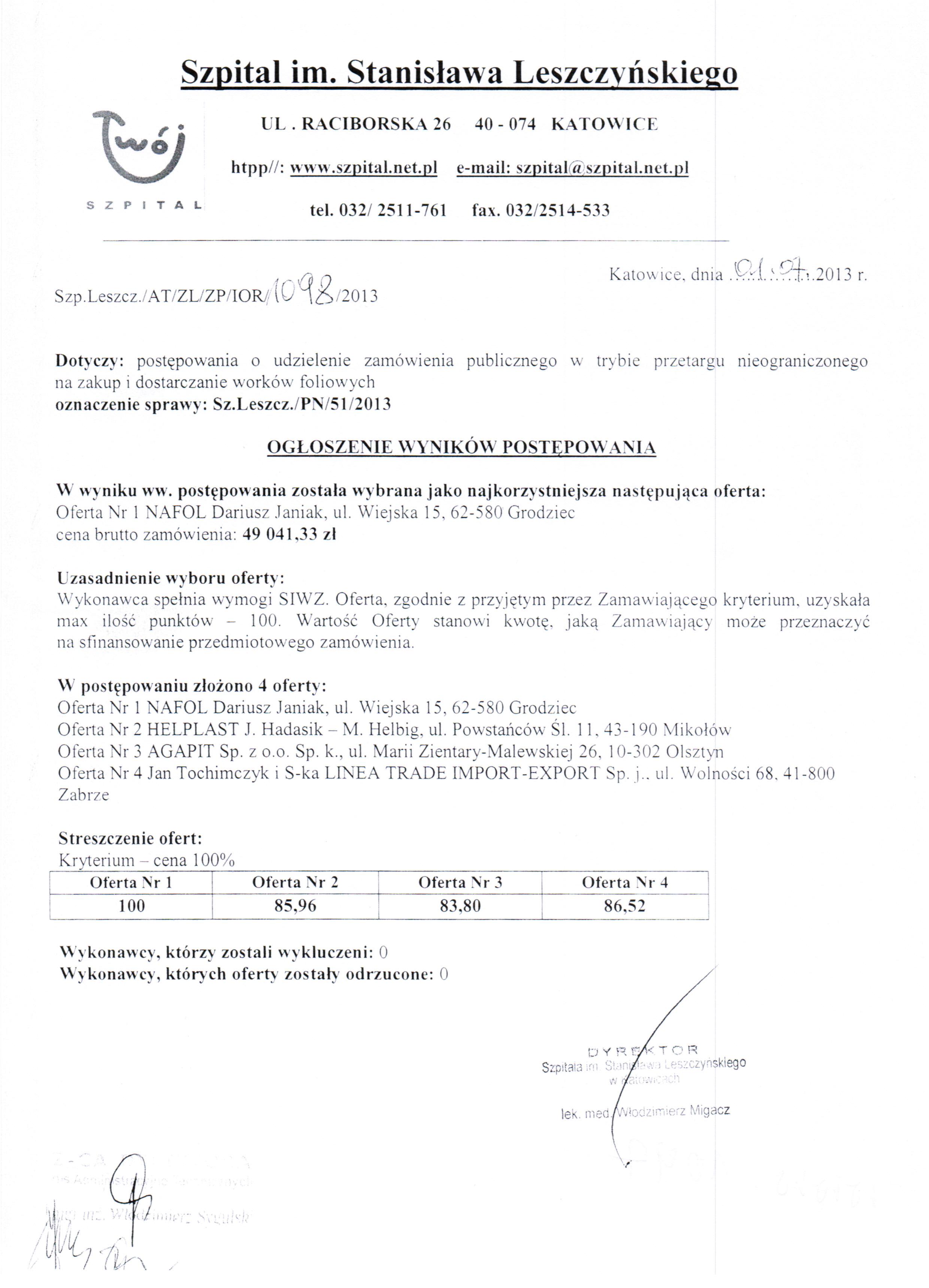 w dniu 10.06.2013r. o godz. 11:00 w 40-074 Katowice, ulica Raciborska 28, budynek Przychodni, II piętro, Sekcja Zamówień Publicznych.