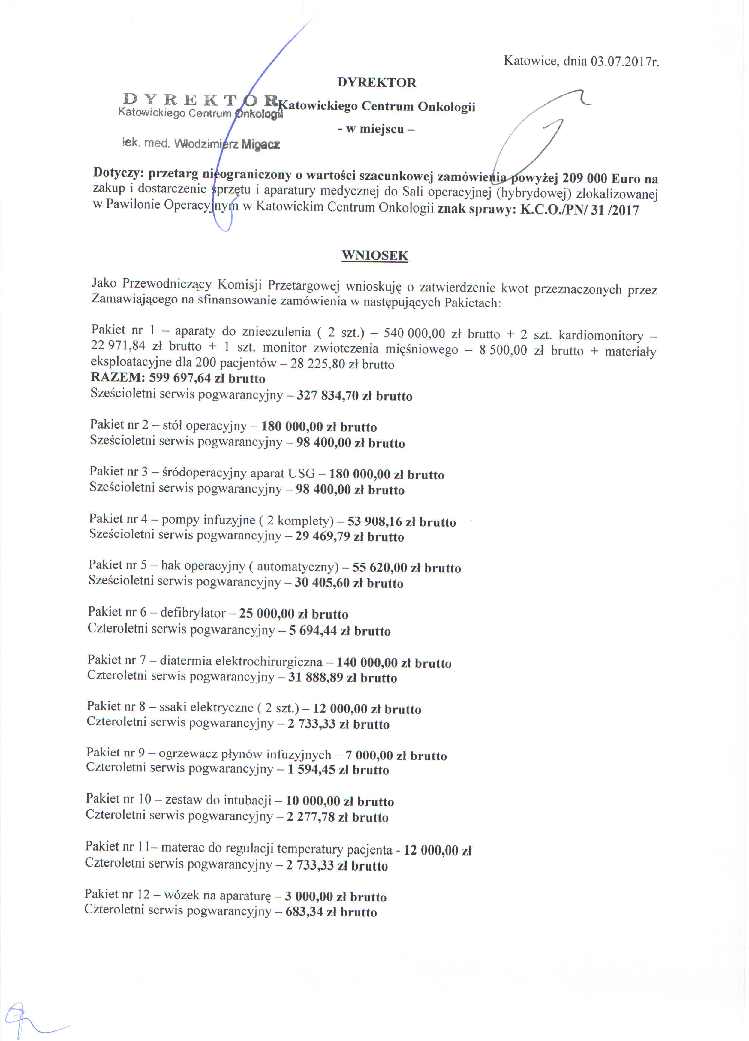 w dniu 04.07.2017r. o godz. 11:00, w 40-074 Katowice, ul. Raciborska 28 (budynek Przychodni, II piętro, Sekcja Zamówień Publicznych)