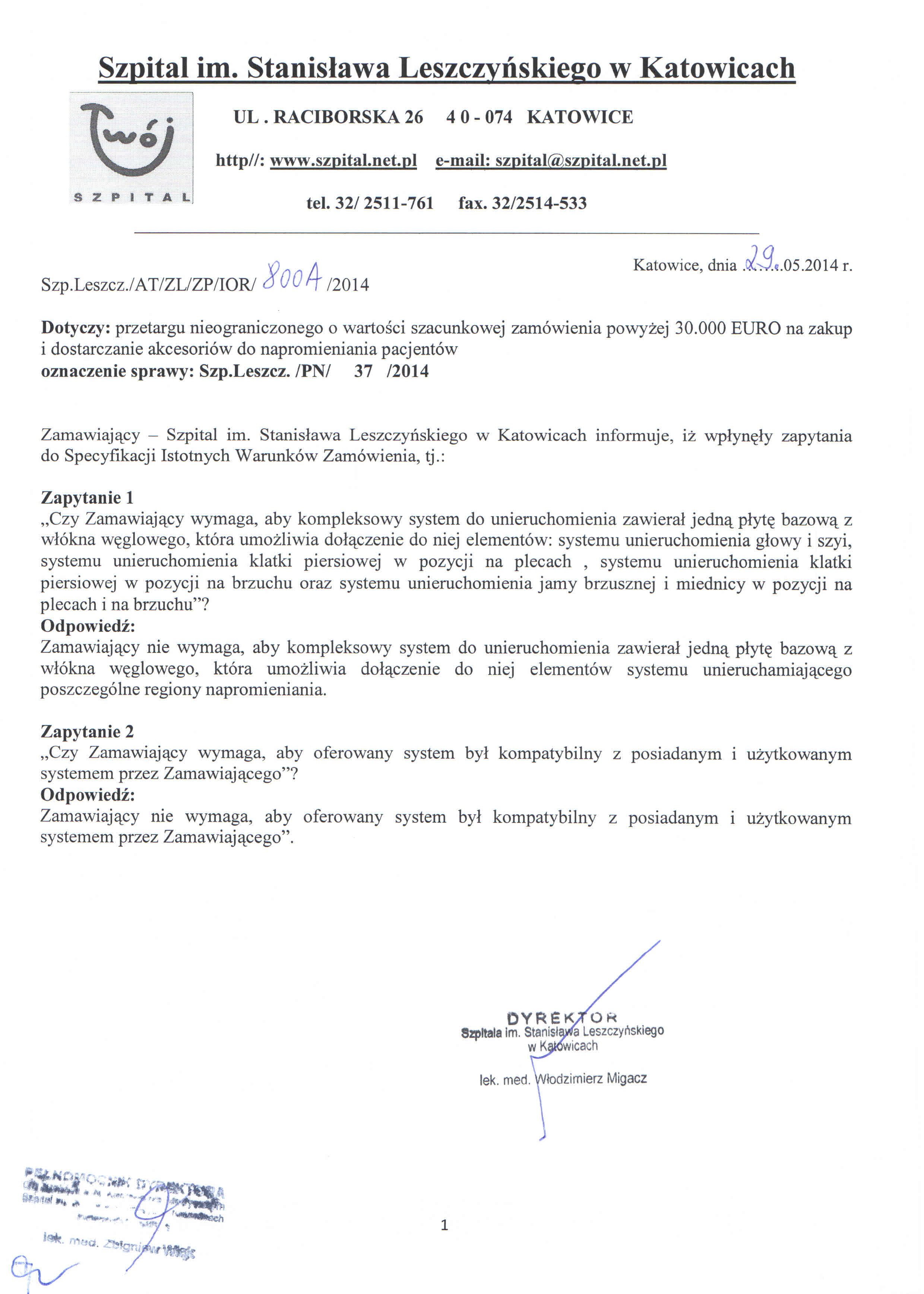 oznaczenie sprawy: Szp.Leszcz /PN/ 37/ 2014