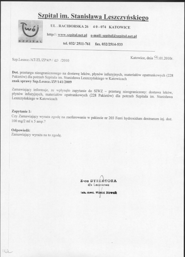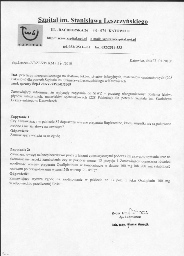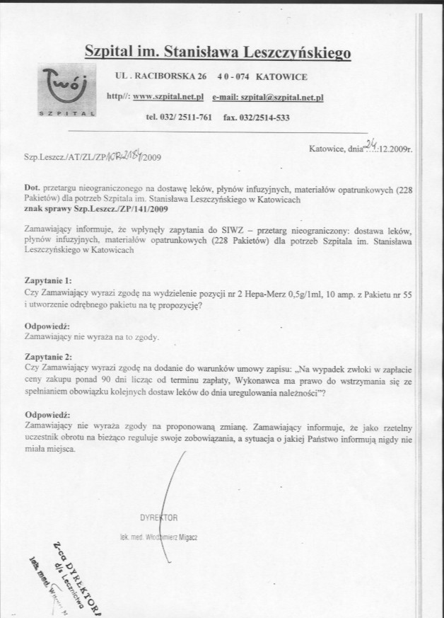 do dnia 19.01.2010r. do godz. 11:00 w Kancelarii Dyrektora Szpitala w Katowicach przy ul. Raciborskiej 26.