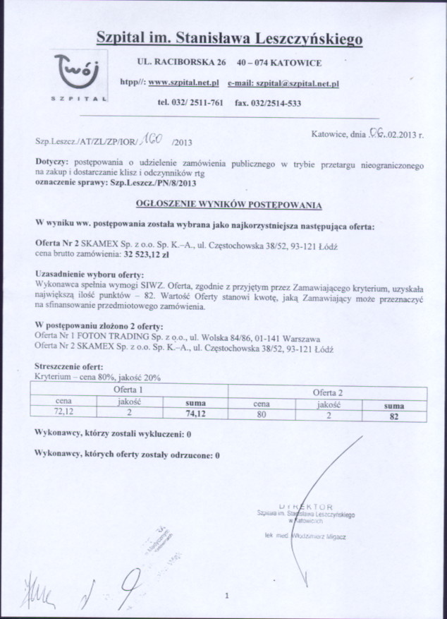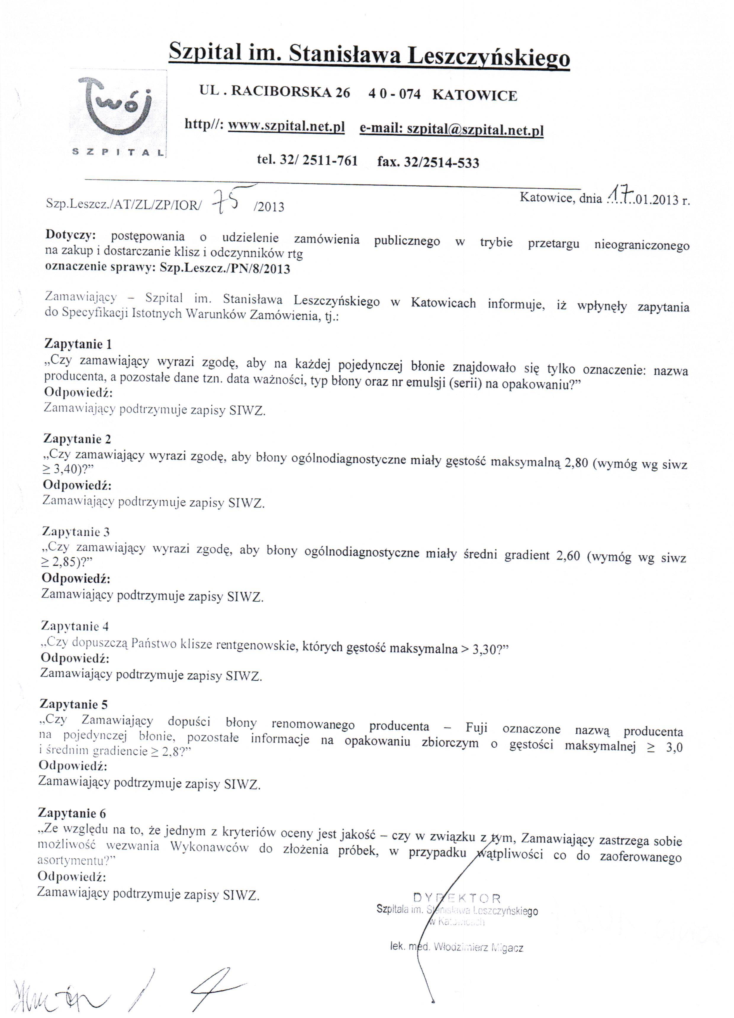 w dniu 21.01.2013r. o godz. 11:00 w 40-074 Katowice, ulica Raciborska 28, budynek Przychodni, II piętro, Sekcja Zamówień Publicznych.