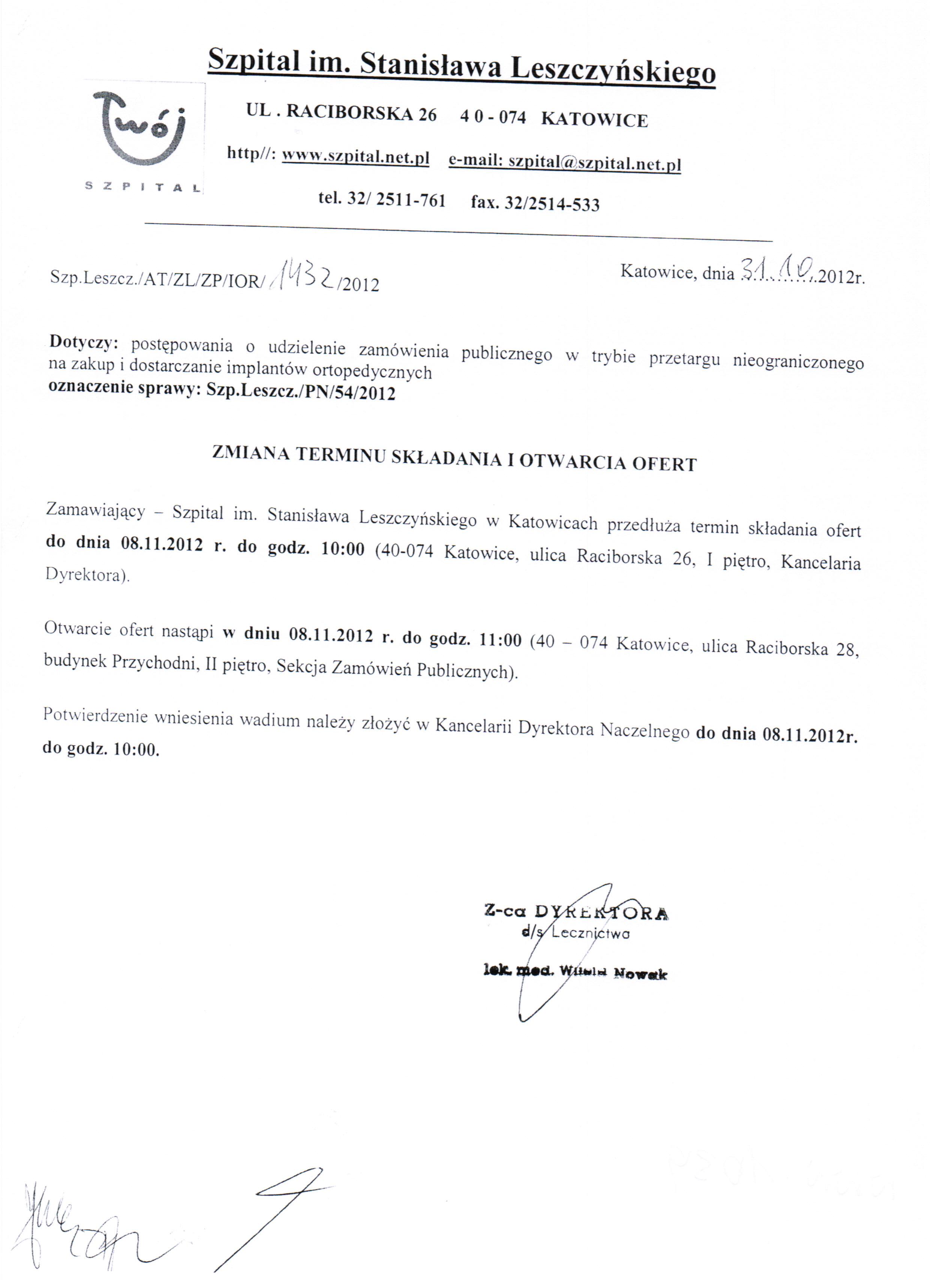 w dniu 05.11.2012r. o godz. 11:00 w 40-074 Katowice, ulica Raciborska 28, budynek Przychodni, II piętro, Sekcja Zamówień Publicznych.