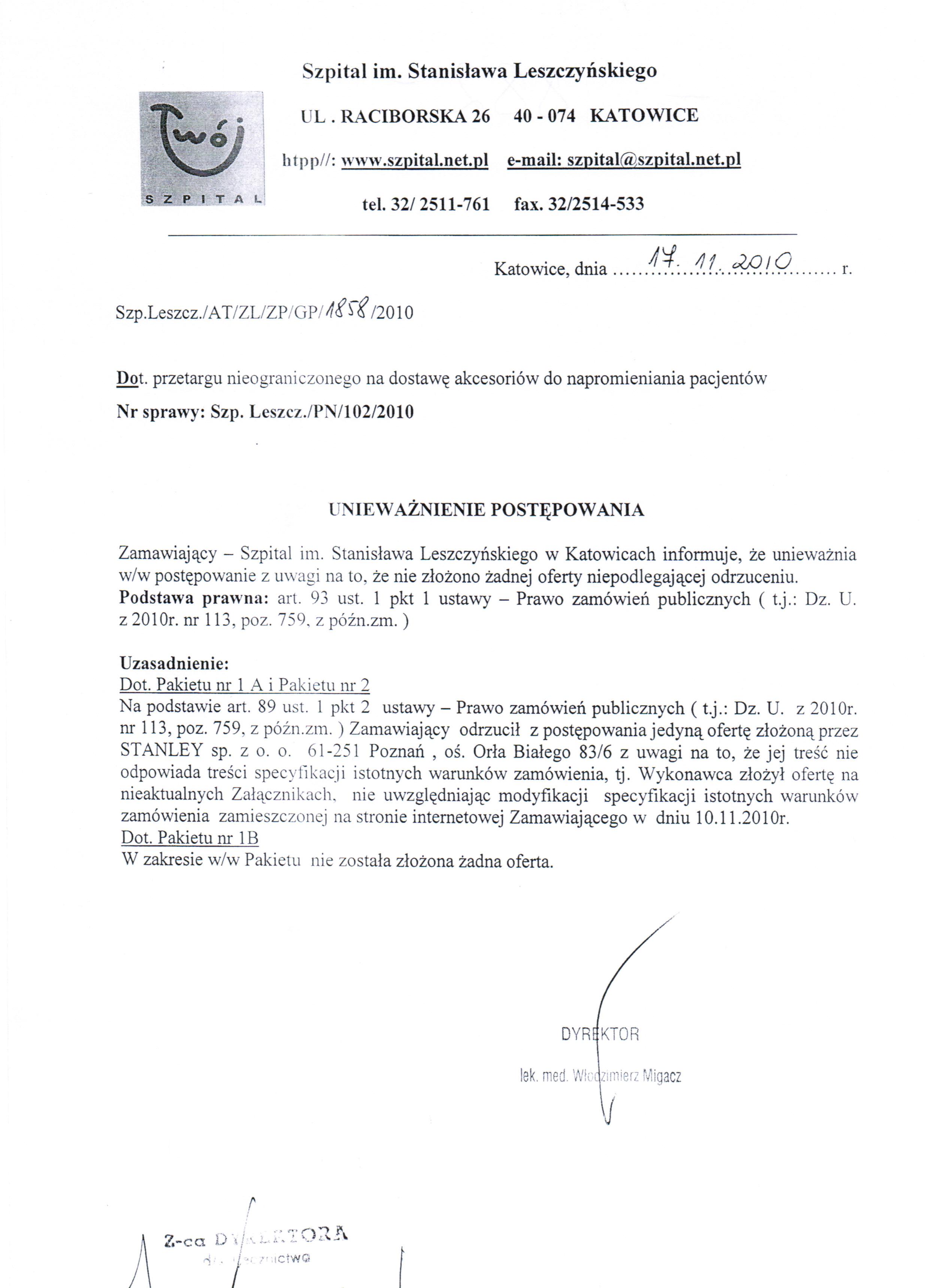 Unieważnienie postępowania (17.11.2010)