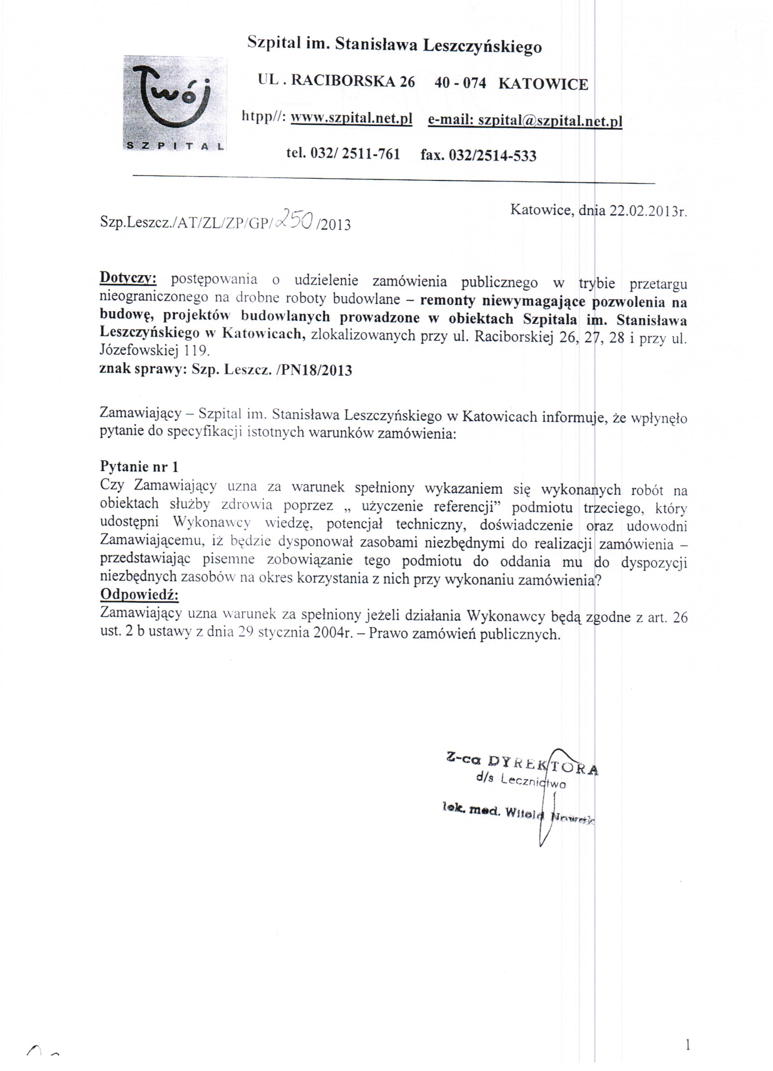 (znak sprawy: Szp.Leszcz./PN/ 18 /2013)