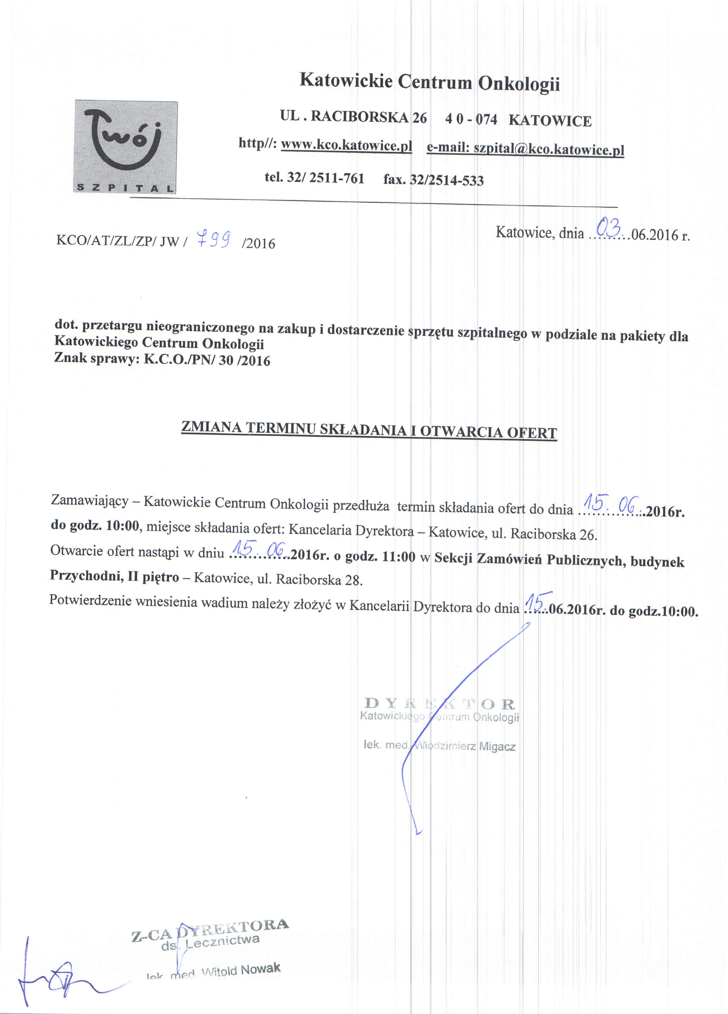 w dniu 07.06.2016r. o godz. 11:00 w 40-074 Katowice, ulica Raciborska 28, budynek Przychodni, II piętro, Sekcja Zamówień Publicznych.