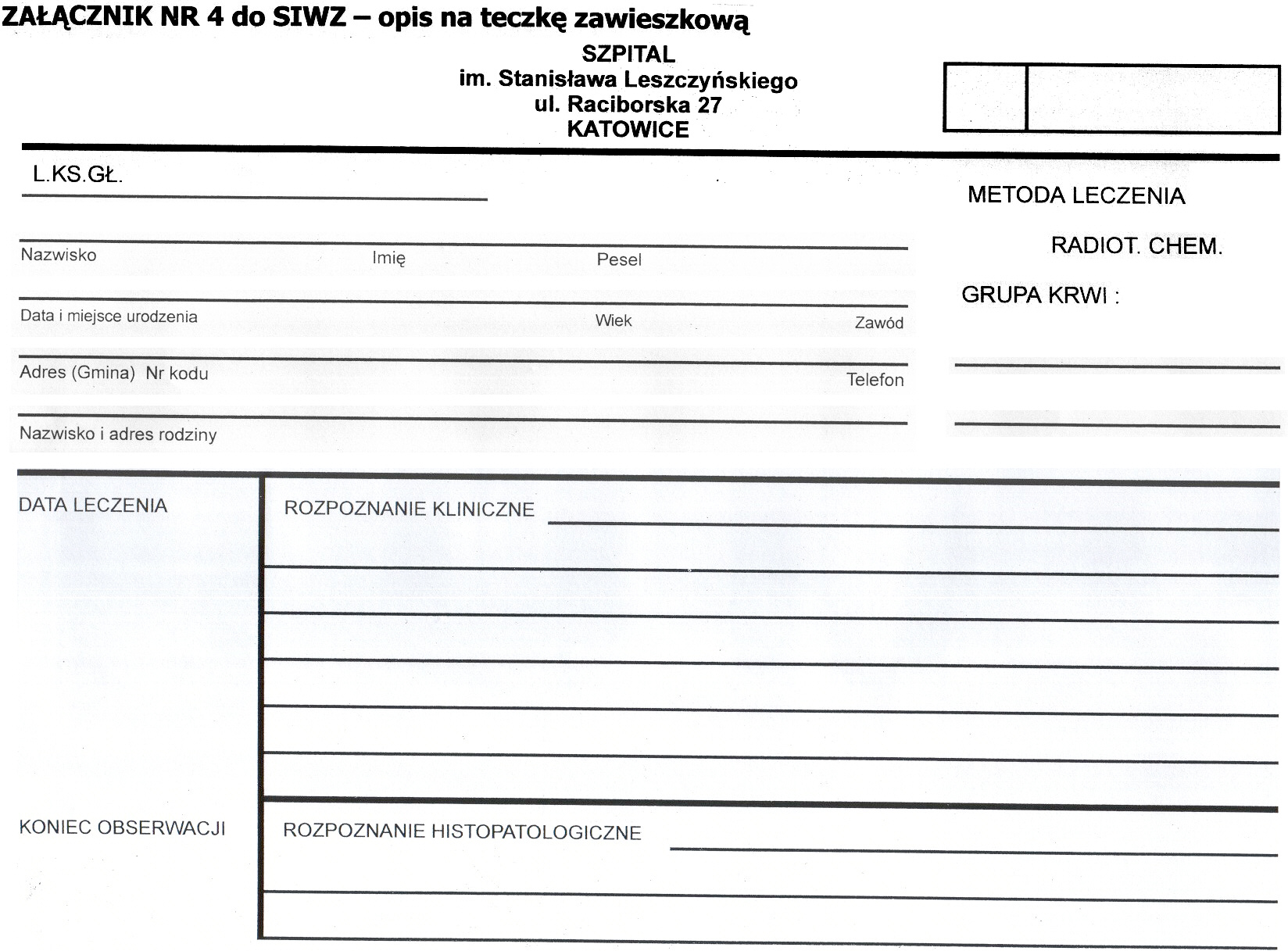Wzór opisu na teczkę określa Załącznik Nr 4 do SIWZ.