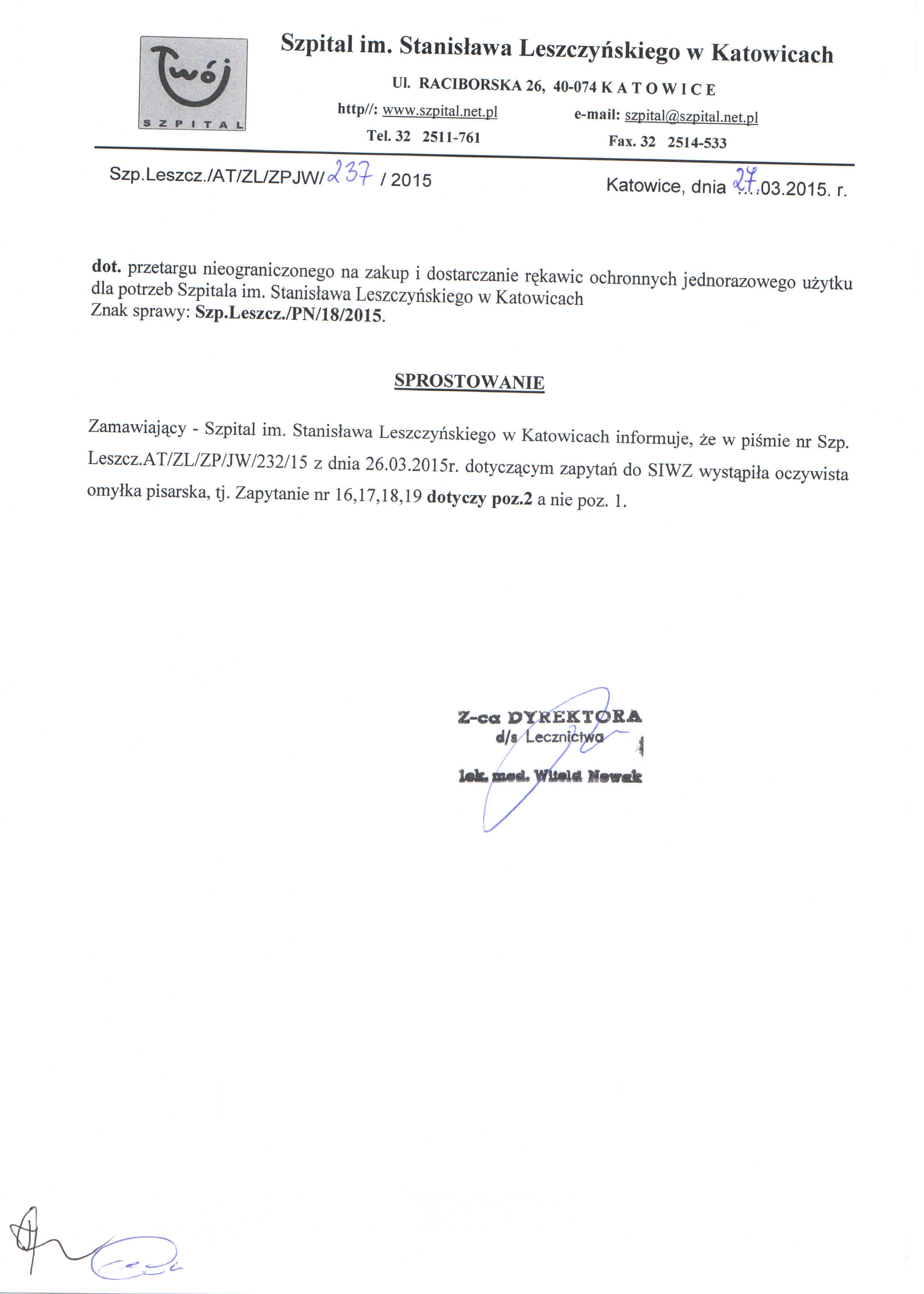 (znak sprawy: Szp.Leszcz./PN/ 18 /2015)