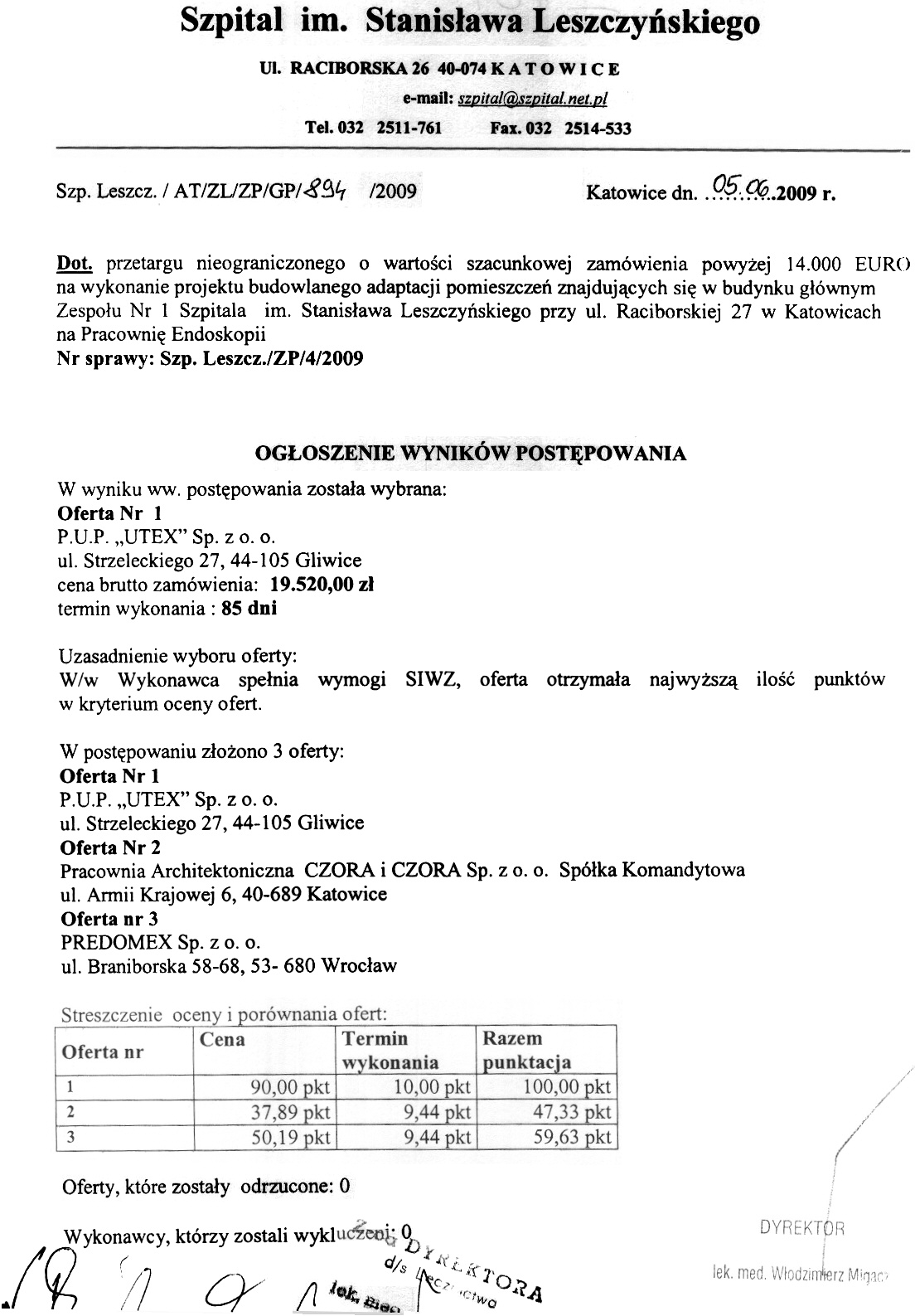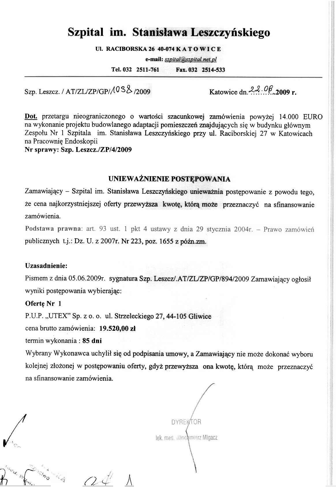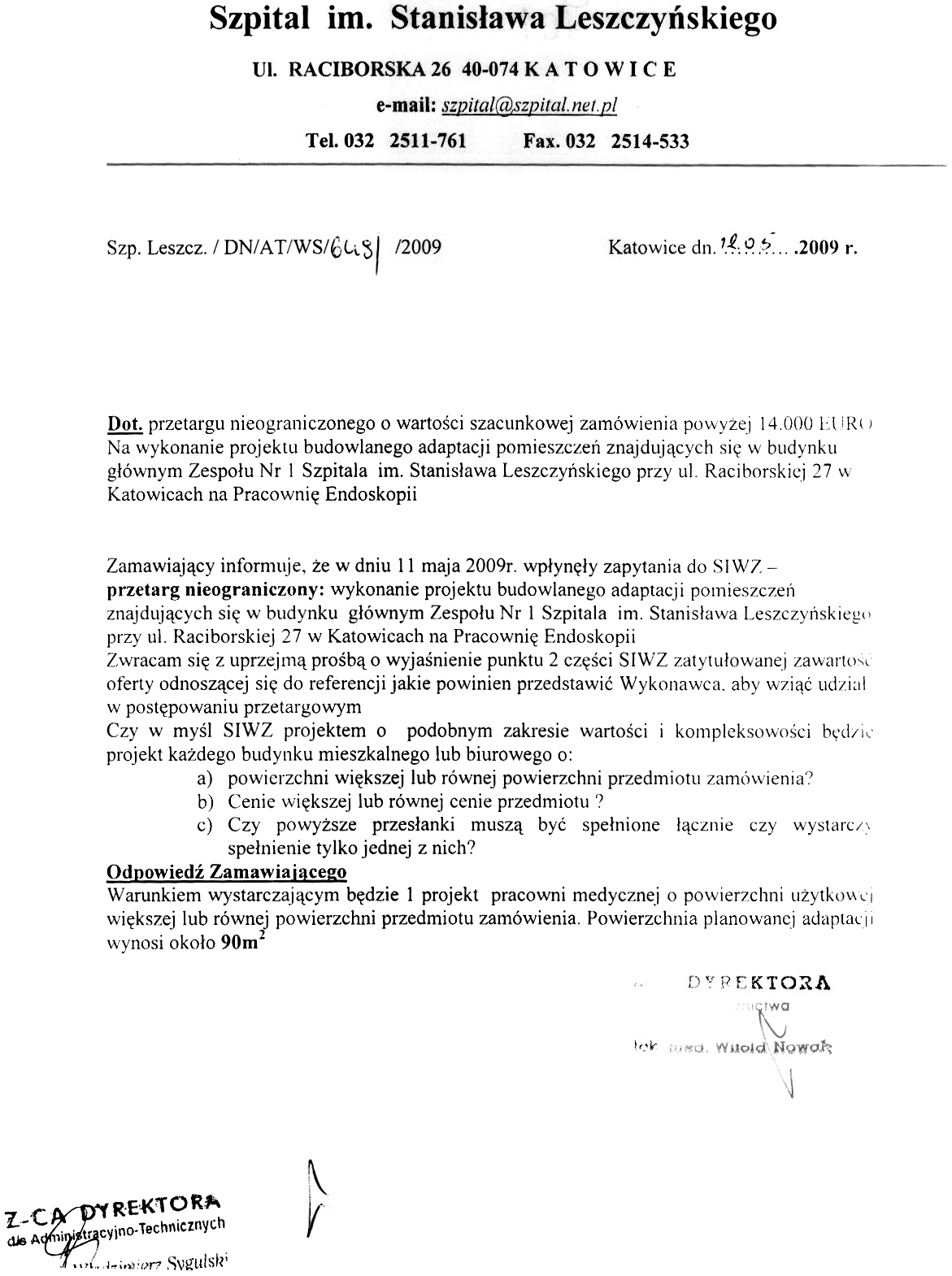 do dnia 25.05.2009r. do godz. 10:00 w Kancelarii Dyrektora Szpitala w Katowicach, przy ul. Raciborskiej 26.