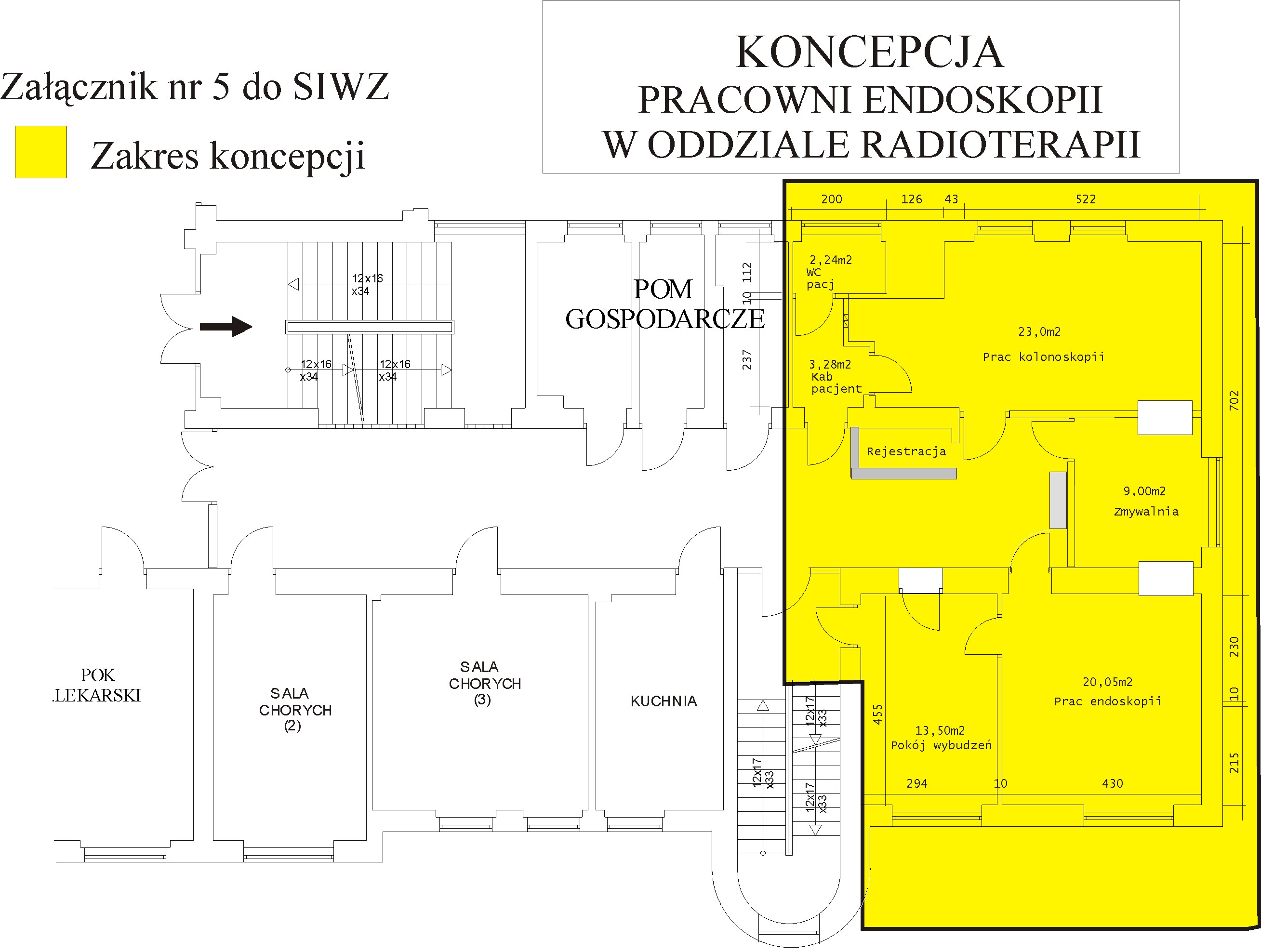 Proponowana funkcja Pracowni Endoskopii musi zawierać pomieszczenia zgodnie z załączoną koncepcją - Załącznik nr 5 do SIWZ, tj.: