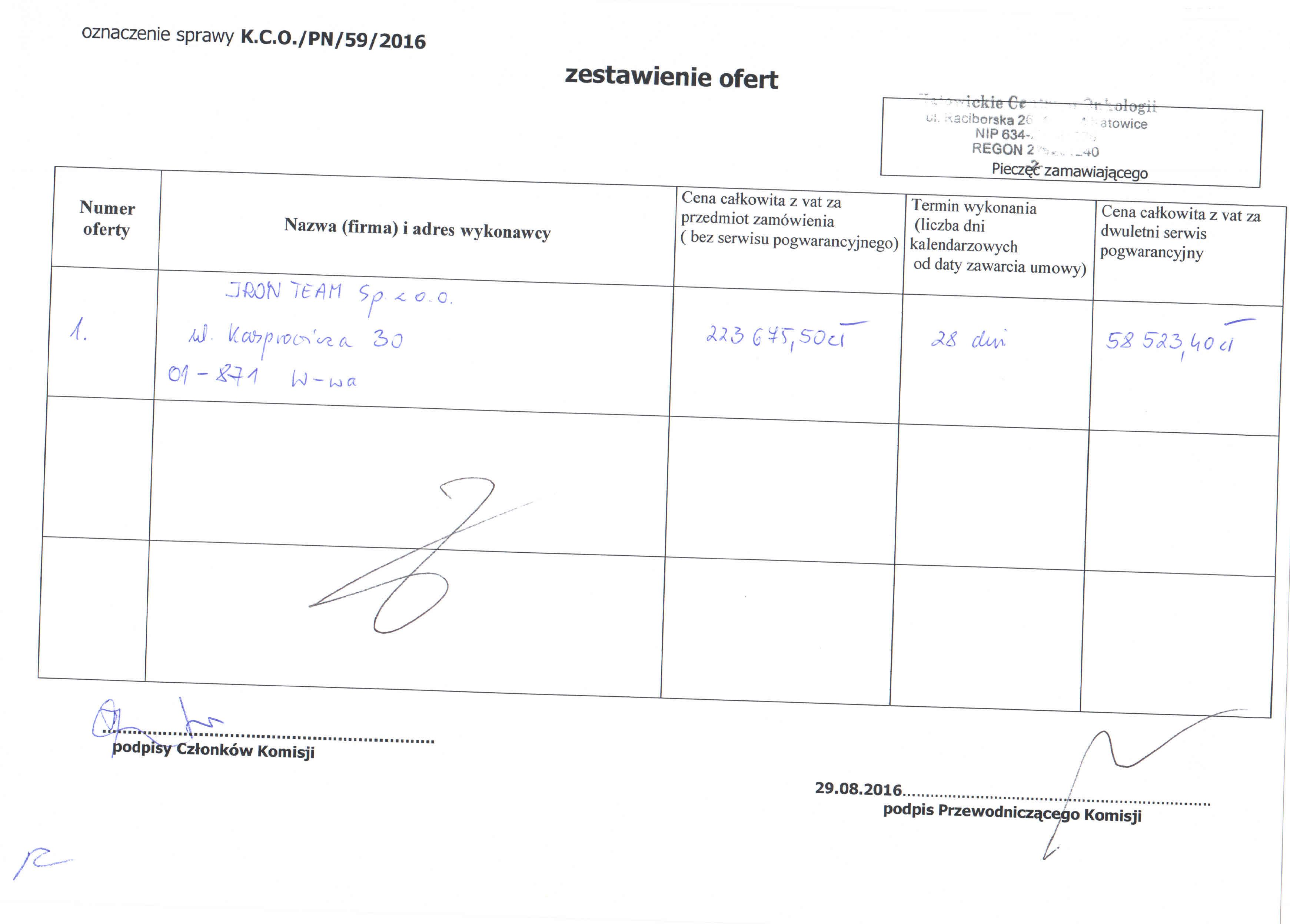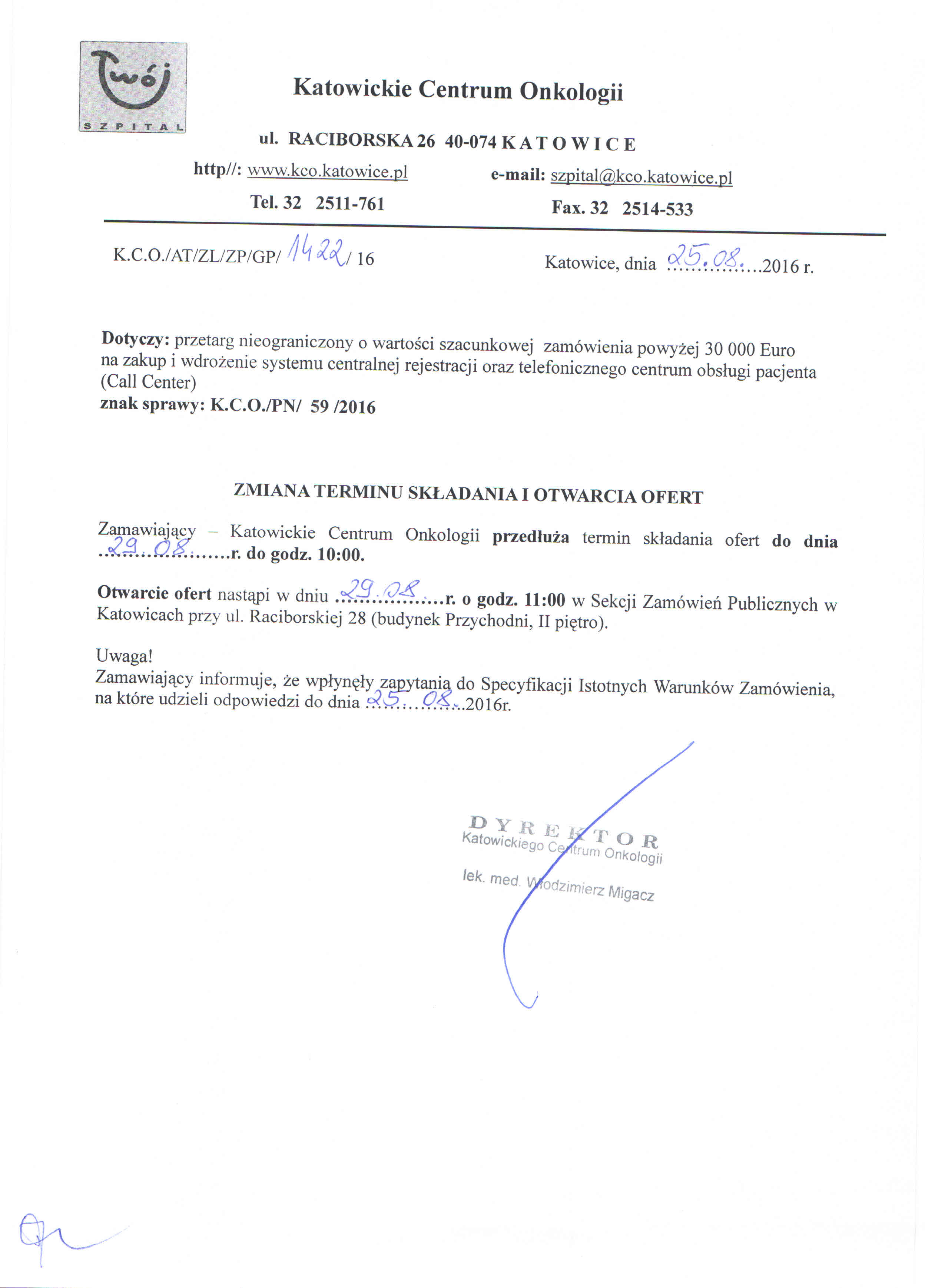 w dniu 26.08.2016r. o godz. 11:00, w 40-074 Katowice, ul. Raciborska 28 (budynek Przychodni, II piętro, Sekcja Zamówień Publicznych)