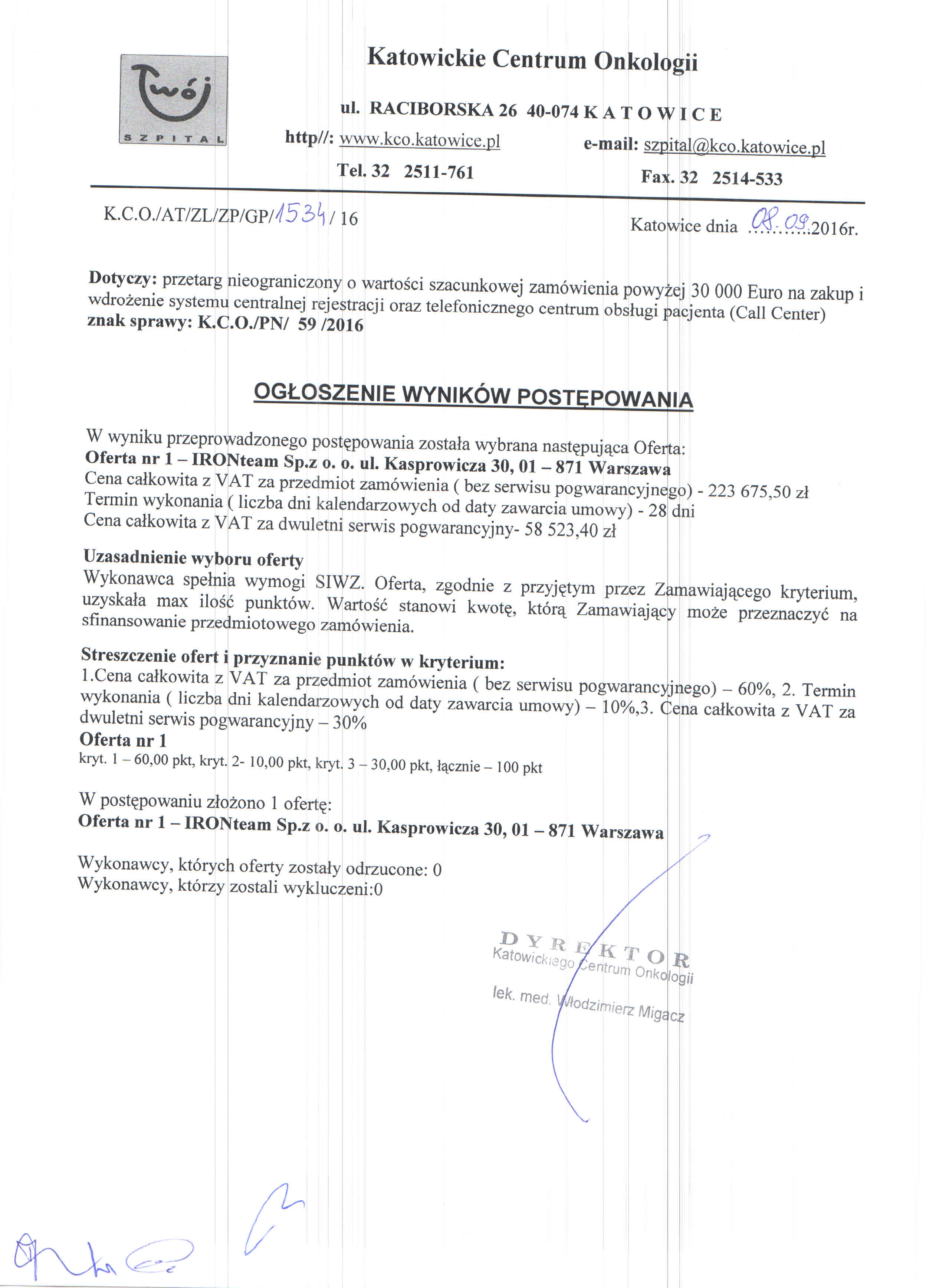 SIWZ można uzyskać pod adresem: Katowickie Centrum Onkologii, 40-074 Katowice, ul. Raciborska 26 – Dział Księgowości.